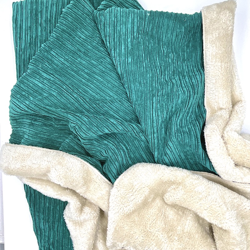 Coperta Plaid in Velluto a coste con Pelliccetta Verde Smeraldo 140×170