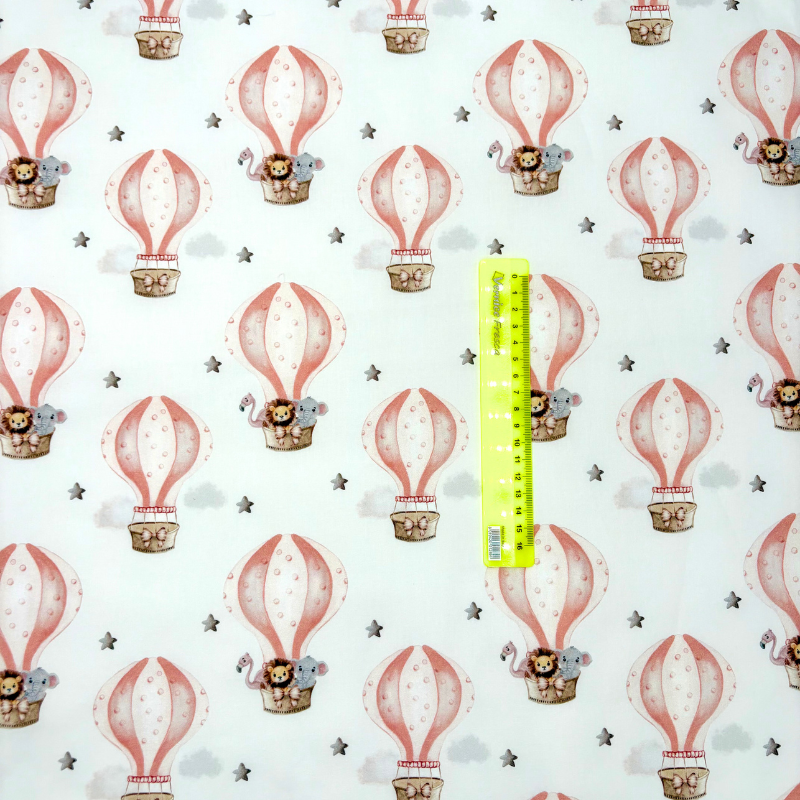 Cotone Baby H 150 cm Fenicottero Leoncino ed Elefantino in Mongolfiera Rosa