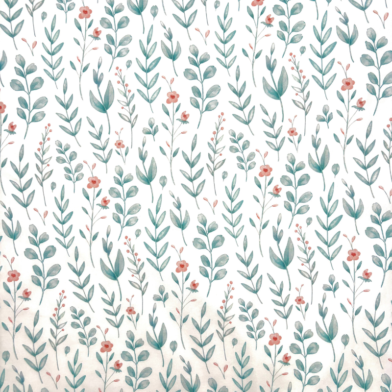 Cotone Baby H 150 cm Fiori e Foglie Delicate